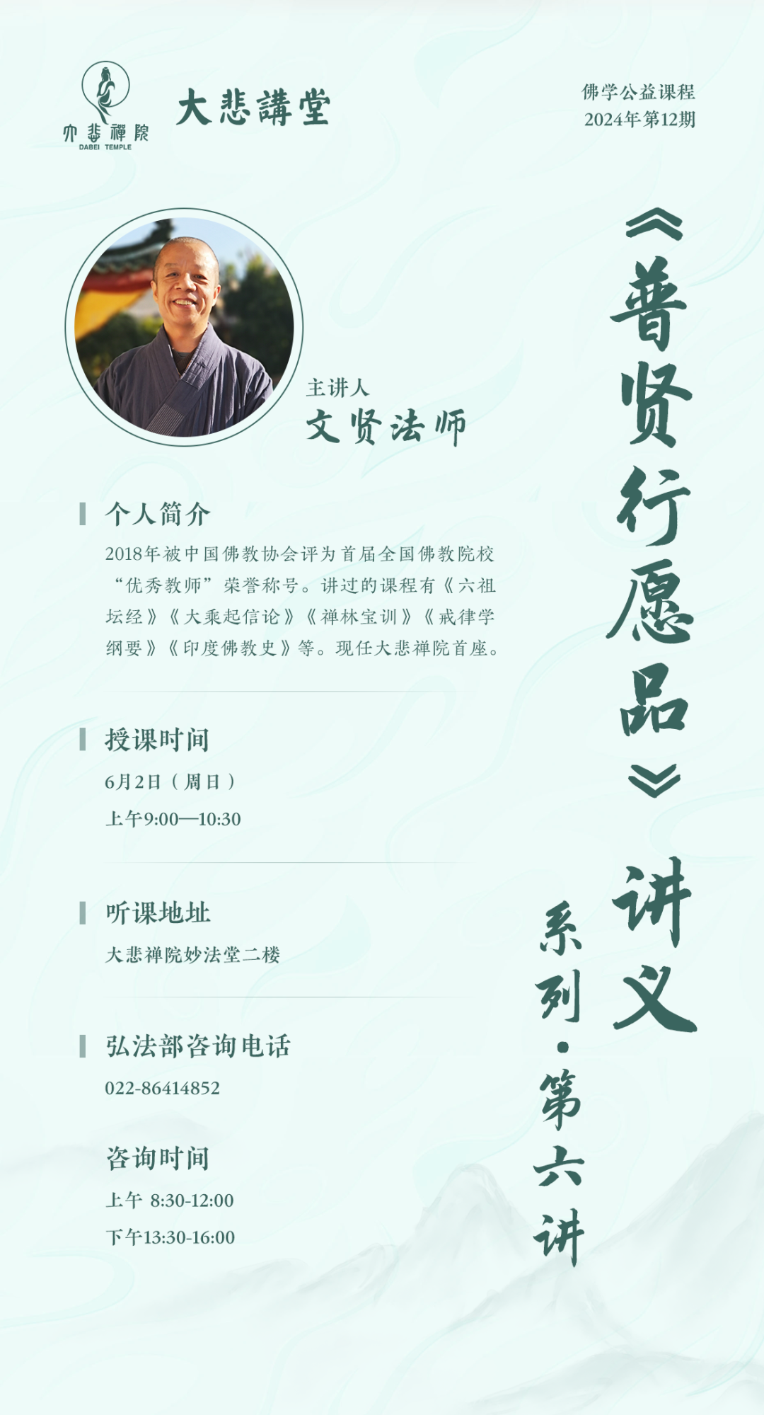 预告 | 2024年大悲讲堂第12期佛学公益课程